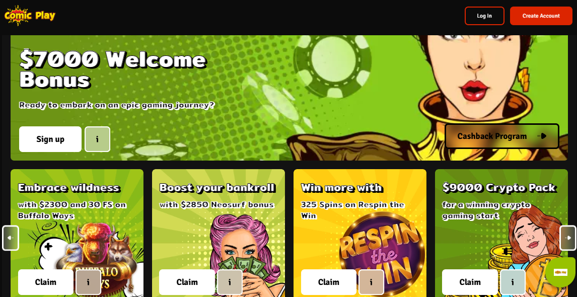 Claim Your Free Chips at Comic Play Casino